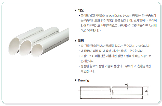 비고 : 1. 관의 표준길이는 4m이며 허용차는 ±10mm임.